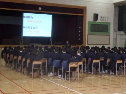 本日、3年生の総合的な学習の時間では障害理解教育を行いました。福祉の現場で働く方を講師にお招きし、現場の様子、働く中でのやりがいや誇り、課題などについてお話していただきました。3年生も話を真剣に聞き、理解を深めていました。12月3日からの障害理解週間での取り組みとして、来週からは1,2年生でも障害理解教育を行います。(田村)