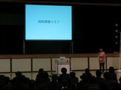 本日、1年生の障害理解教育を行いました。安心ネットせたがやの「手をつなぐ親の会」と社会福祉協議会の方を講師にお招きし、や知的障害の理解を深める講話していただきました。また見え方や聞こえ方、接し方の体験学習をして、より理解を深めることができました。(遠藤)