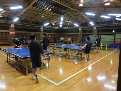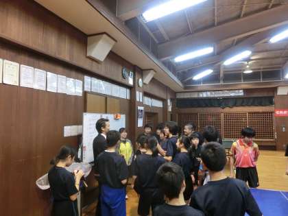 格技室では卓球部が活動していました。試合形式の練習の後、次の練習についての説明をしているところです。練習の目的をきちんと理解して練習に取り組めるようにしましょう。(遠藤)