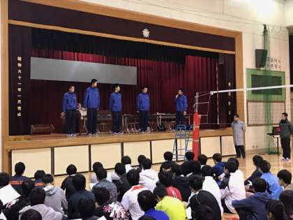 男子バレー部は毎年恒例の審判講習を深沢高校の生徒から受けています。この後他の高校生たちと練習試合です。よく勉強して、高校生に圧倒されないよう頑張りましょう。(森川)
