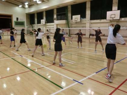 体育館ではバドミントン部が活動しています。明日、公式戦でダブルスの試合があるので、2年生は実戦練習をしていました。1年生は基礎練習です。正しいフォームを意識して打つようにしましょう。(遠藤)