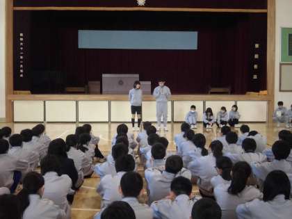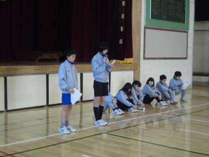 1年生は4校時に学年集会を行いました。各クラスの学級委員から2学期の振り返りの話があり、先生から学習と生活についての話がありました。2学期もあと1日です。今日の振り返りを冬休みや3学期の生活にいかしていきましょう。(遠藤)
