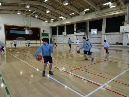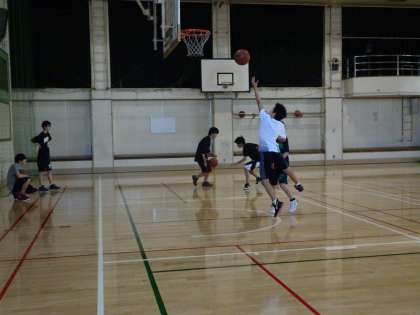 体育館では男子バスケットボール部が活動しています。ハンドリングはバスケットボールの基本です。きちんと身につけましょう。(遠藤)