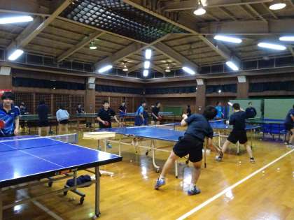 卓球部が格技室で活動しています。今日も元気に練習しています。明日は試合ということで気合が入っていますね。(遠藤)