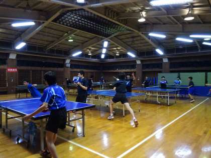 格技室では卓球部がランキング戦を行っています。自分の部内ランキングを一つでも上げられるようにがんばりましょう。(遠藤)