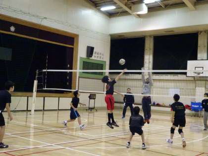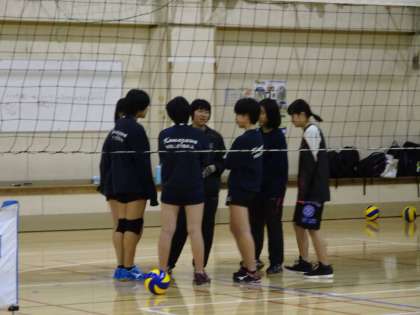 体育館ではバレーボール部が活動していました。男子は午前中に練習試合を行ってきたようです。練習試合で見つかった課題を修正していきましょう。女子はミーティング中のようです。(遠藤)