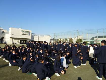 本日、避難訓練を行いました。今回は地震を想定した訓練です。校庭まで避難し安全確認が取れるまでの目標は4分以内です。「お・か・し・も」を守り4分以内で避難できるようにしましょう。(遠藤)