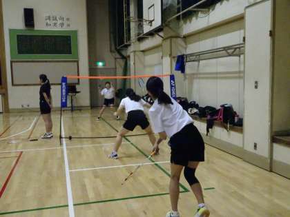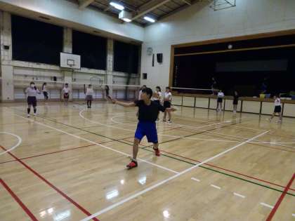 体育館ではバドミントン部が活動しています。1年生が、大会に出場する選手を選抜するために試合をしていました。(遠藤)