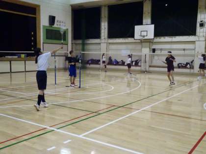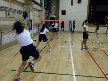 バドミントン部が体育館で活動していました。今日も1年生が試合を行っているようです。(遠藤)