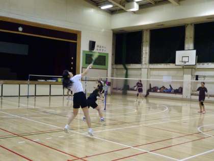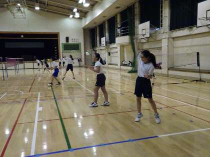 体育館ではバドミントン部が活動しています。2年生は実戦的な練習です。1年生もラリーが続くようになってきましたね。(遠藤)