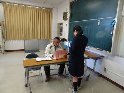 私立高校の推薦入試の出願が始まっています。今朝から出願に行っていた生徒が学校に戻ってきて、受験番号を報告しています。(遠藤)