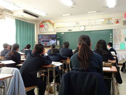 1年生の教科「日本語」の授業の様子です。「人生に答えを見つけた男の物語」という題材をもとにALSと闘う人たちやホスピスの映像を見て、生きることについて考えました。(遠藤)