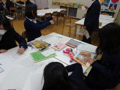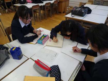 美術室では美術部が活動しています。ポスターコンテストに応募する作品の下書きや校内作品展の準備をしていました。(遠藤)