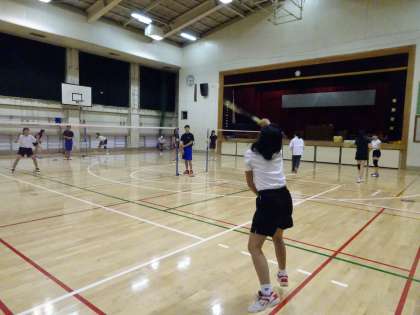 体育館ではバドミントン部が活動しています。1年生大会に向けて試合形式の練習をしていました。(遠藤)