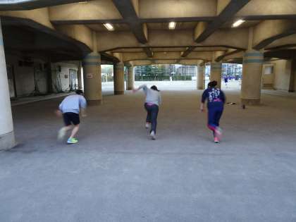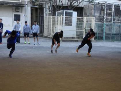 プール下で陸上競技部が活動しています。今日はスタート練習をしていました。(遠藤)