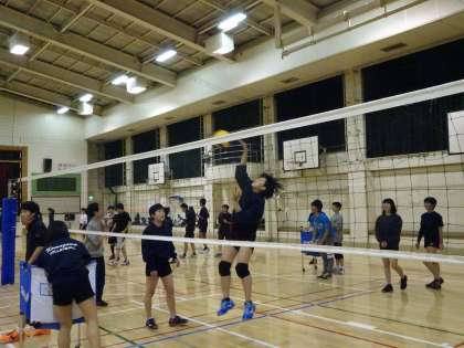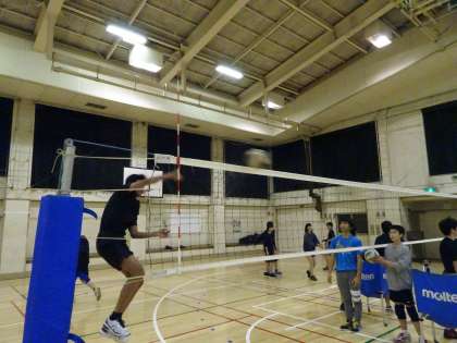 バレーボール部が体育館で活動しています。男子も女子もスパイク練習をしていました。(遠藤)