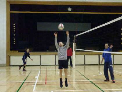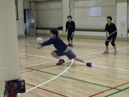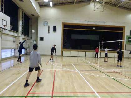 14時から男子バレーボール部が体育館で活動しています。ゲーム形式の練習をしていました。(遠藤)