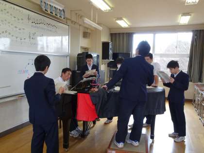 3年生の音楽の授業の様子です。私立一般入試が始まっているので、多くの生徒が試験を受けに行っています。学校に来ている生徒たちは、卒業式に向けて「あなたへ」や「旅立ちの日に…」の練習をしていました。(遠藤)
