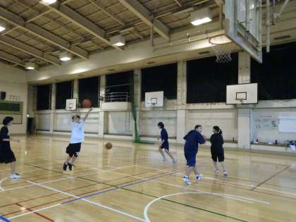 午後の体育館では女子バスケットボール部が活動しています。1年生5人での活動ですが元気に練習しています。先輩たちに追いつけるようにがんばりましょう。(遠藤)