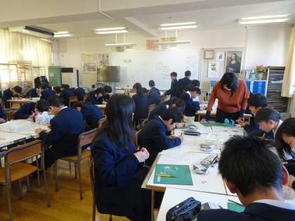 2年C組の美術の授業の様子です。螺鈿を作っていました。(遠藤)