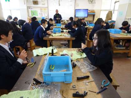 2年D組の技術の授業の様子です。半田ごての製作をしていました。(遠藤)