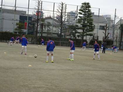 校庭ではサッカー部が活動しています。ワンタッチでパス交換をしていました。次にパスを出す選手の位置を確認しながらサポートに入っていきましょう。(遠藤)