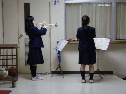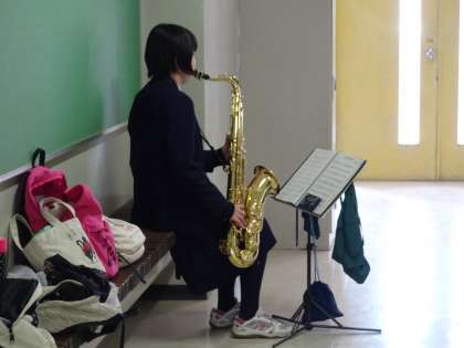 吹奏楽部も久しぶりの活動です。今日は各パートごとに練習しています(遠藤)