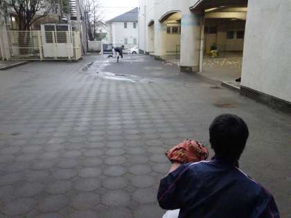 野球部がプール下で活動しています。バドミントンのシャトルを利用してバッティング練習をしていました。(遠藤)