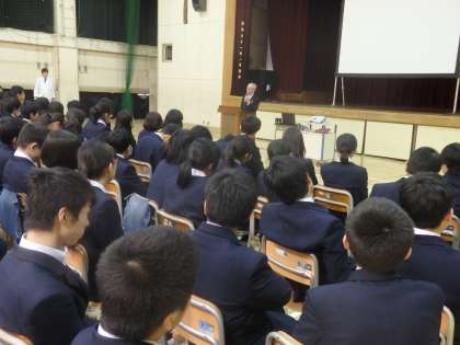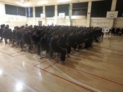 3年生は6時間目に体育館で薬物乱用防止教室を行いました。世田谷警察署の方を講師にお招きし、薬物乱用の危険性を映像や講話等で確認しました。午前中の茶道体験に続き、生徒たちも真剣に話を聞いていました。(田村)