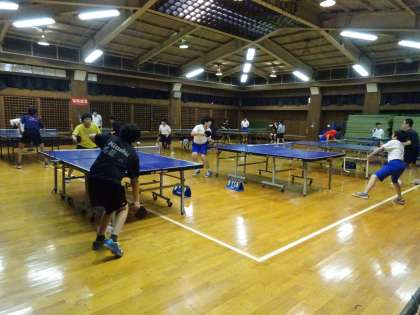 格技室では卓球が活動しています。今日は部内で練習試合を行っているようです。(遠藤)