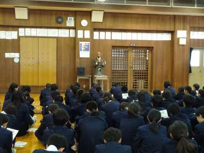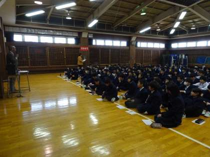 本日5校時、1年生は講師にエチオピアからの難民で日本に帰化された方を講師にお招きして、合同社会を行いました。講師の先生から難民がどうして生まれるのか、どんな苦労をしてきたのかなどを学びました。(遠藤)