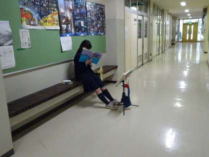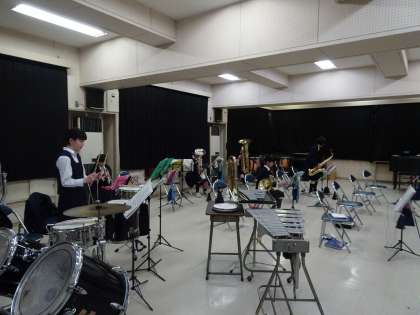 第2音楽室では吹奏楽部が活動しています。卒業式に向けての練習です。(遠藤)