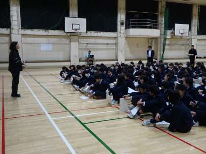 本日5校時、1年生は職場訪問の事前指導を行いました。職場訪問に行く心構えやマナーについての話を真剣に聞いていました。(遠藤)