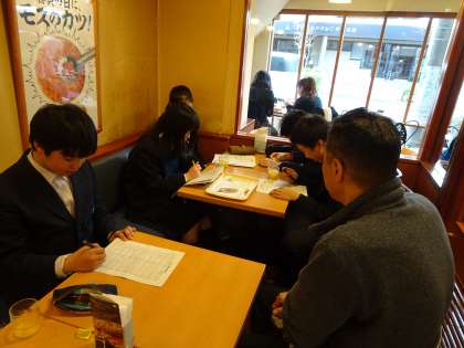 本日5,6校時、1年生が職場訪問を行いました。各班ごとに事業所に訪問して、30分程度のインタビューをしてきました。どの班もメモを取りながら真剣に話を聞いていました。(遠藤)