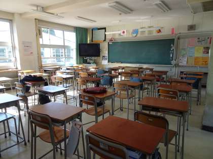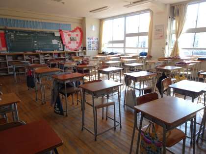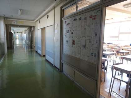 今日は、2年生が校外学習に行っているので、3階の2年生のフロアーには誰もいません。教室の机やいすも明日また元気な生徒たちに会って、校外学習の土産話を聞けるのを楽しみにしているかもしれませんね。(遠藤)