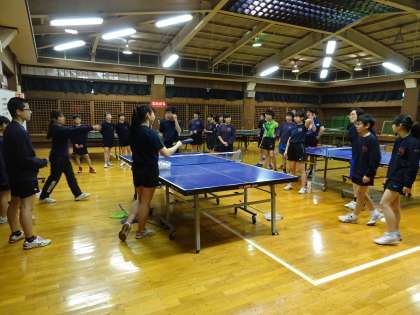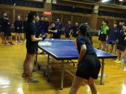 格技室では卓球部が活動しています。3年生が練習メニューのお手本を見せていました。3年生に追いつけるように1,2年生はがんばりましょう。(遠藤)