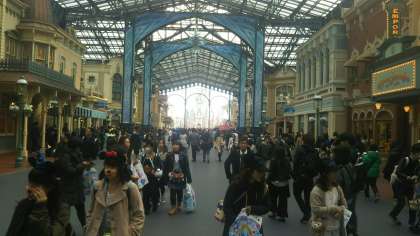 パレードも終わり、ワールドバザール方面に生徒が来はじめました。お土産をこれから買うようです。(田村)