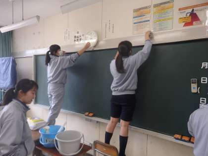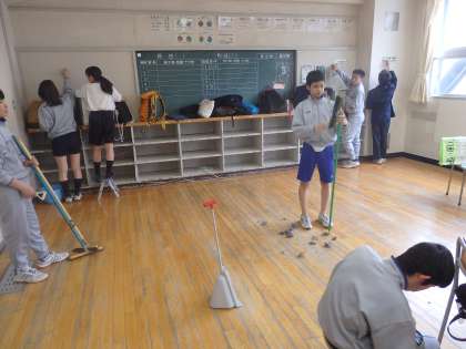 午後、3年生は奉仕活動を行い、校内の清掃に取り組みました。3年間、自分たちが過ごした校舎に対しての感謝の気持ちをもって取り組んでいました。(田村)