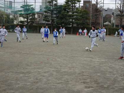 2年生の体育の授業の様子です。男子は校庭でサッカー、女子は格技室でダンスをしていました。(遠藤)