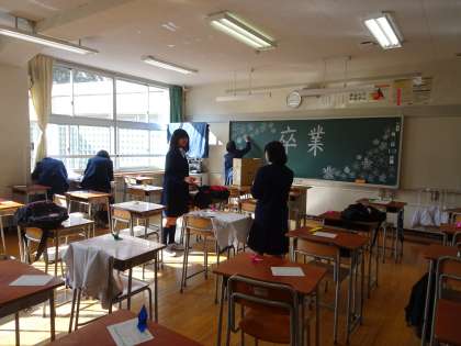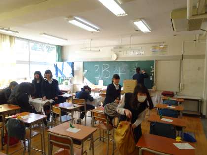 今日は卒業式です。3年生は駒沢中での最後の1日を惜しむかのように朝は早くから登校して、黒板にメッセージを書いたり、体操着に寄せ書きをしたりしています。(遠藤)