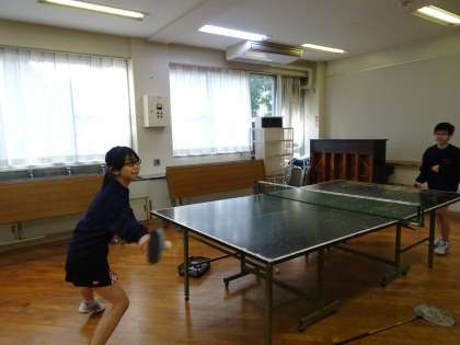 格技室では卓球部が活動しています。ドライブとブロックの練習をしていました。(遠藤)