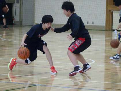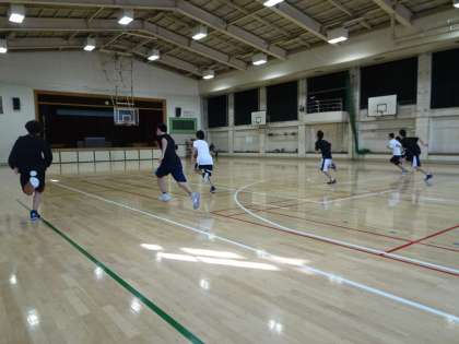 体育館では男子バスケットボール部が活動しています。今日は走るメニュー中心の練習です。1試合、全力で走り切れるだけの体力をつけていきましょう。(遠藤)