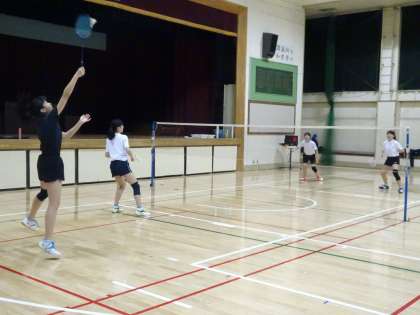 体育館ではバドミントン部が活動しています。試合形式の練習をしていました。試合の中でしか学べないこともあります。何ができていて何ができていなかったのかをふり返りましょう。(遠藤)