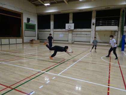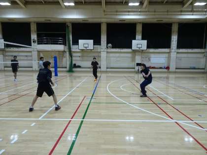男子バレーボール部が体育館で活動しています。3メンでレシーブ練習をしていました。(遠藤)
