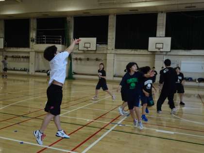 女子バスケットボール部が体育館で活動しています。スクリーンやVカット、Iカットを使ってパスがもらえるようになってきましたね。(遠藤)