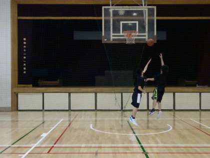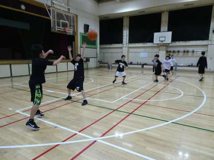 男子バスケットボール部が午後から体育館で活動しています。ボールサイドカットやアウェイカットを使ってパスをまわしましょう。(遠藤)