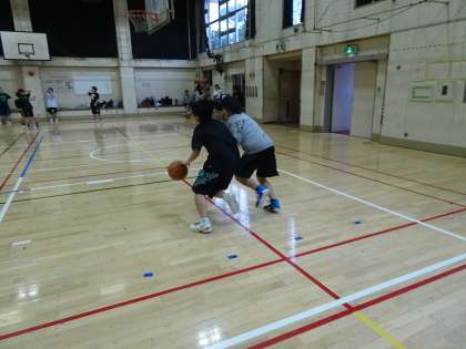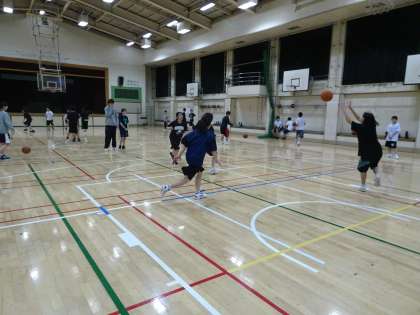 午後から女子バスケットボール部が体育館で活動中です。シュートフェイクやパスフェイクを入れながらボールをまわして攻撃しましょう。(遠藤)