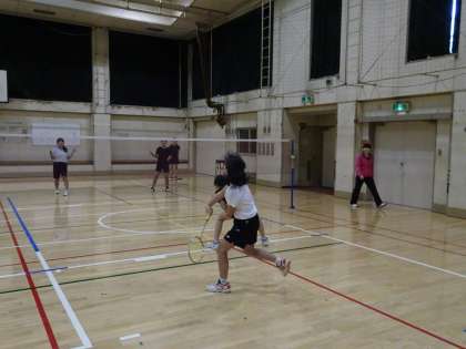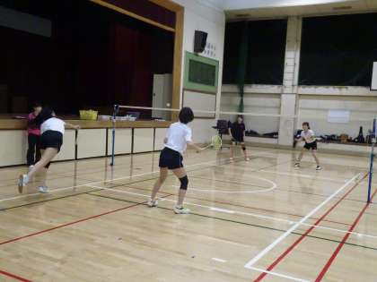 体育館ではバドミントン部が活動しています。試合形式の練習をしています。勢いのあるスマッシュが決まっていました。(遠藤)
