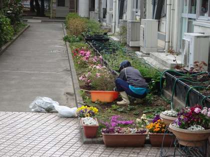 主事さんが花壇の手入れをしてくれていました。きれいな校内で新学期をむかえることができます。ありがとうございます。(遠藤)