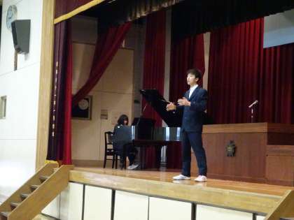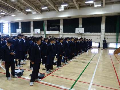 始業式です。いよいよ新学期のスタートです。校長先生からは「あんな先輩になりたい」とあこがれられるような上級生になってほしいという話をいただきました。校歌も大きな声でさわやかに歌うことができましたね。(遠藤)